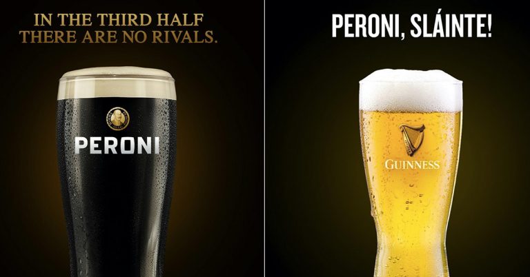 Birra Peroni a symboliquement échangé son verre avec celui de Guinness, l’un des ses principaux concurrents. Une initiative que la marque de bière irlandaise à suivit. Ce troc a eu lieu sur les réseaux sociaux. Ainsi, la bière blonde de Peroni rejoint le récipient Guinness et inversement pour la bière noire.