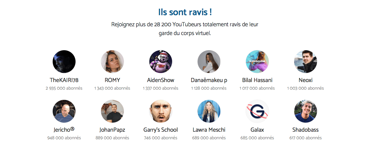 Bodyguard est passé de 2 500 utilisateurs à 28 000 en un an. De nombreux Youtubeurs utilisent cette application. D’ailleurs Bilal Hassani, le candidat français à l’Eurovision avait partagé son avis sur le plateau de Quotidien.