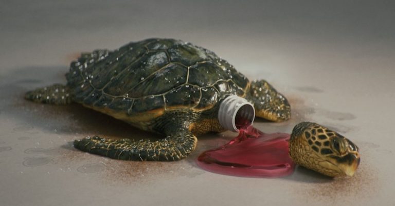 Dans cette nouvelle campagne, diffusée sur les réseaux sociaux avec une mécanique “tap to open”, invite l’internaute à aller sur la story suivante pour ouvrir une bouteille aux allures de tortue. Après 1 clic, la tortue se retrouve décapitée, et le fameux message “Microplastics kill the ocean” apparaît.