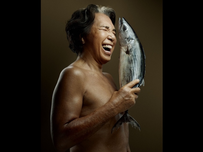 Fishlove surfe ainsi sur le comportement humain pour protéger la biodiversité des fonds marins. L’association propose alors à son tour un diaporama photo avec les éléments phares d’une campagne à succès : des people, du nu, et des poissons comme accessoires.