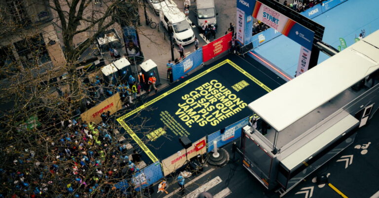 À l’occasion de la Journée internationale des droits des femmes, le 8 mars, et du HOKA Semi de Paris organisé le même jour, la marque de running HOKA et l’association SineQuaNon ont lancé une initiative symbolique pour dénoncer un problème largement sous-estimé : le harcèlement subi par les femmes lorsqu’elles courent. Imaginée avec l’agence PAVILLON NOIR, l’opération baptisée « Le sas manquant » a pris place directement sur la ligne de départ de la course parisienne. L’objectif : rendre visible l’absence de celles qui ont renoncé à courir dans l’espace public.