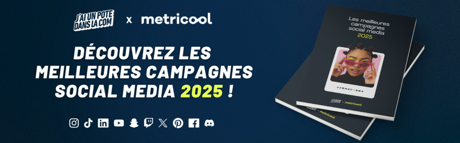 Pour tous ceux qui attendaient notre livre blanc, il est enfin là ! Instagram, TikTok, LinkedIn, YouTube, Snapchat, Twitch, X, Pinterest, Facebook, Discord, pour chaque plateforme, nous avons retenu les activations qui nous ont semblé les plus marquantes. Une sélection forcément subjective et non exhaustive, mais pensée pour vous offrir un aperçu de ce qu’il s’est fait de mieux en social media en 2025.