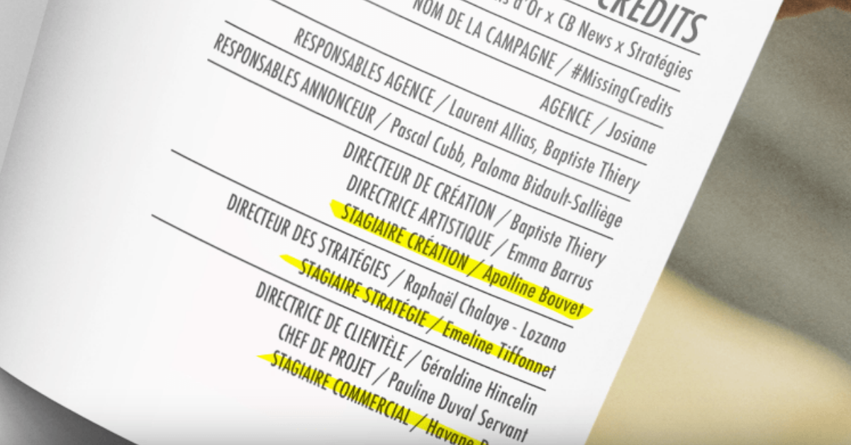 Dans les crédits des campagnes, les stagiaires sont toujours absents et cette année les Chatons d’Or ont décidé de leur redonner du crédit !
