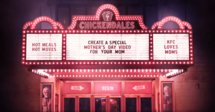 Sur le site Chickendales, les mamans peuvent profiter d’une vidéo et d’un show personnalisé du Colonel Sanders et de ses cohortes. Il suffit de taper le prénom et le lieu de résidence pour bénéficier de ce superbe spectacle personnalisé.