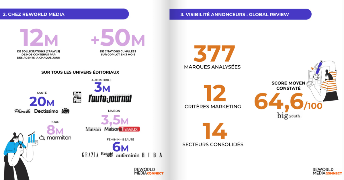 Publié trimestriellement, ce baromètre se positionne comme un outil de pilotage pour suivre l’évolution des performances et identifier les axes d’optimisation. Une manière pour Reworld MediaConnect de s’installer au cœur des nouveaux enjeux liés à l’IA, où la visibilité repose de plus en plus sur la capacité des marques à être jugées pertinentes… et recommandables.
