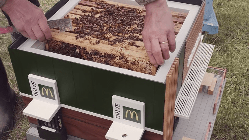 En Suède, McDonald’s vient de présenter le plus petit restaurant du monde. Restaurant qui s’avère être une ruche pour abeilles !
